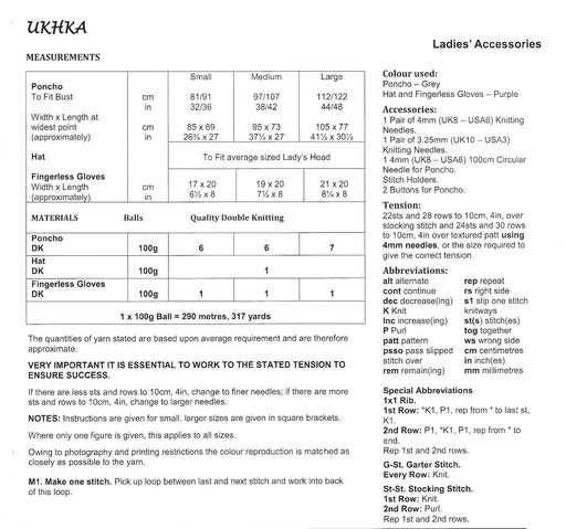 UKHKA 238 Double Knitting Pattern - Ladies DK Poncho, Hat & Fingerless Gloves