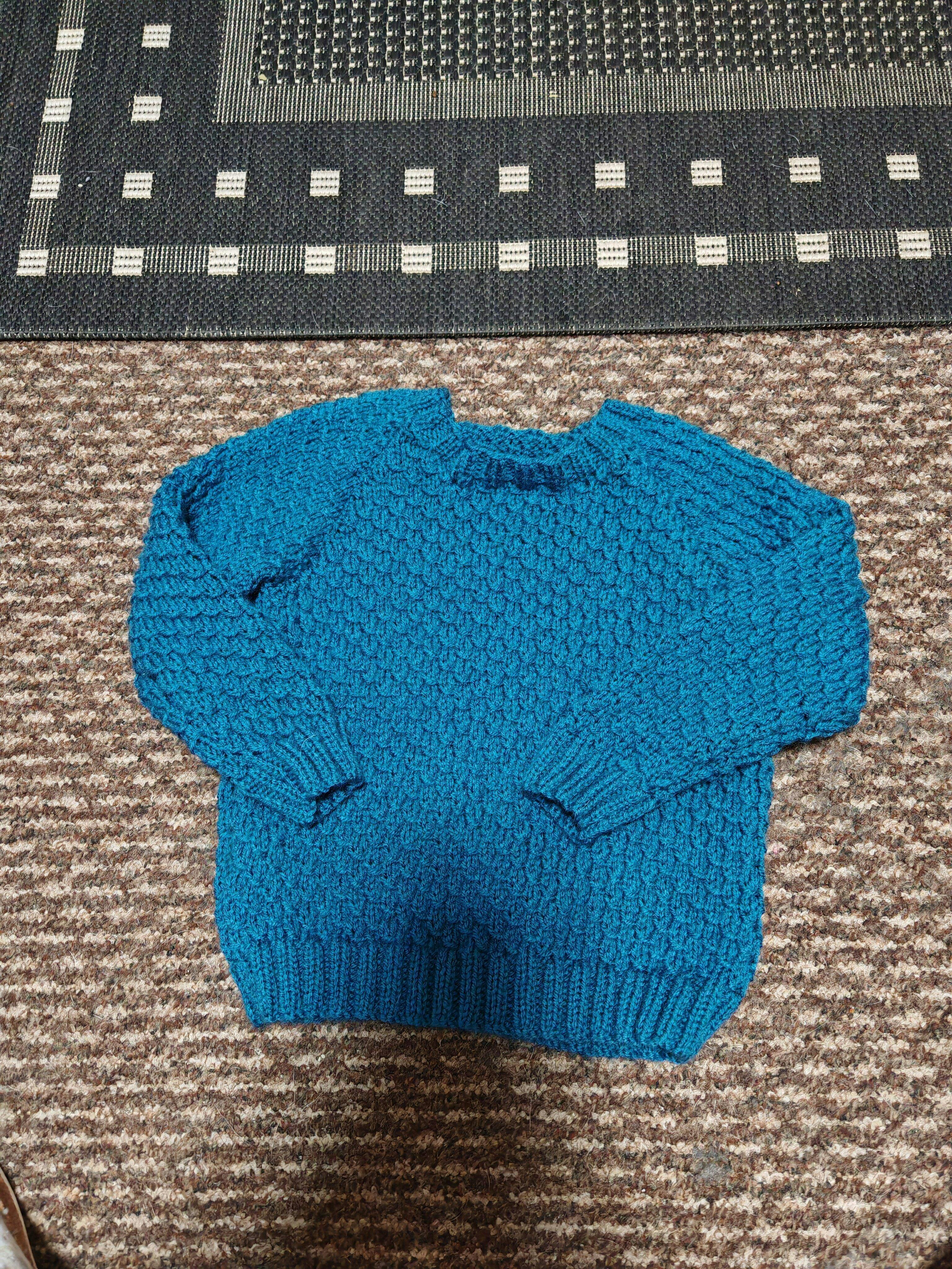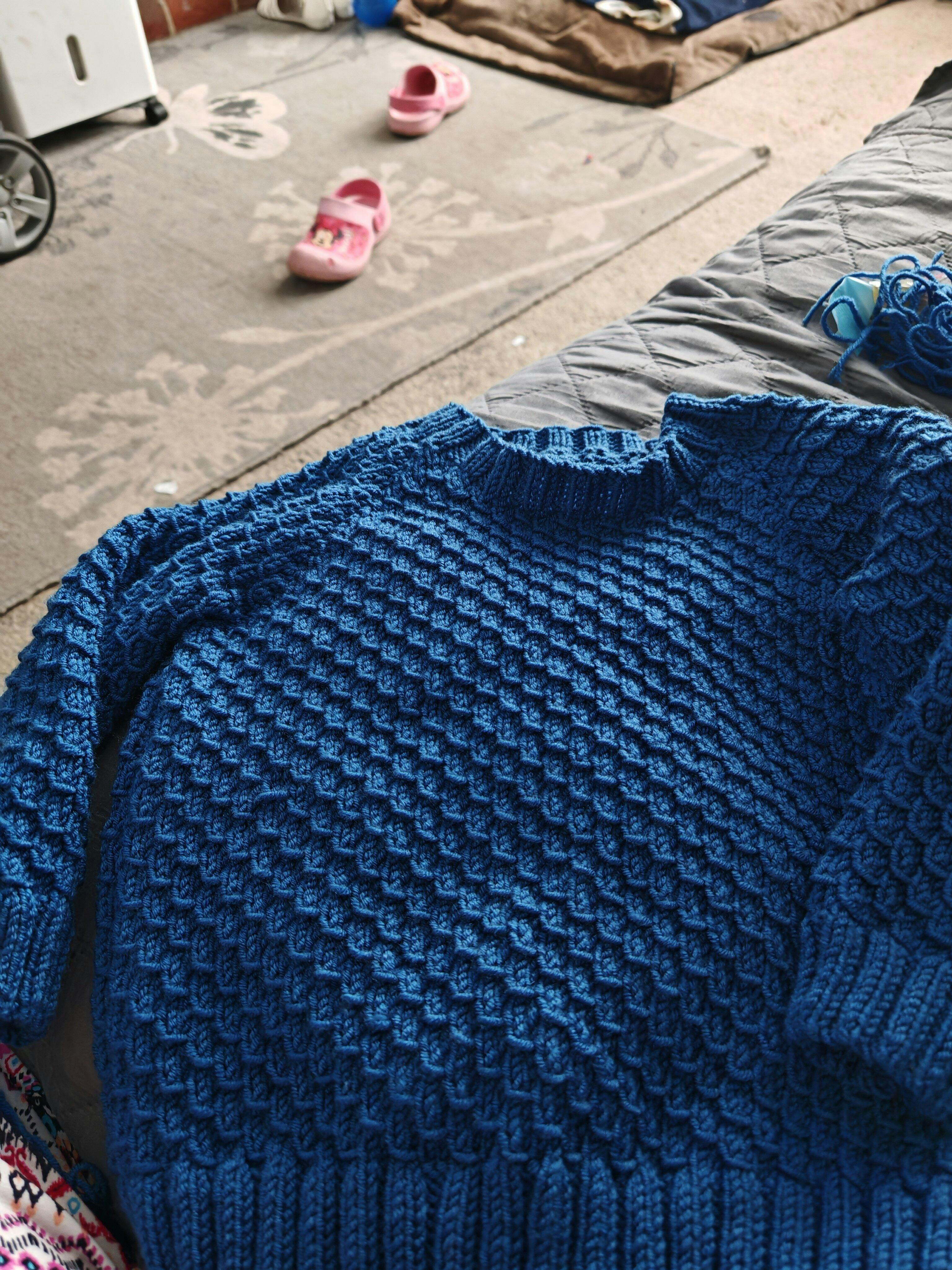 The yarn used in this boys pattern is King Cole Cherish DK in 115 Honeycomb (patterned) and King Cole Cherished DK in Ocean, Nickel and French Navy (plain).