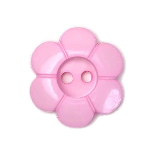 Pretty light pink daisy buttons sold in quantities of 5.  Size: 23mm (13/16 inch or 34 Ligne). 2 hole plastic buttons