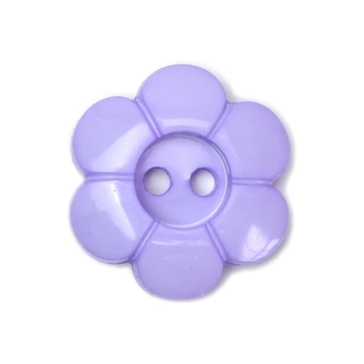 Pretty lilac daisy buttons sold in quantities of 5.  Size: 23mm (13/16 inch or 34 Ligne). 2 hole plastic buttons
