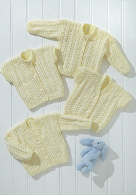 UKHKA273 –  Pattern for babies This beautiful leaflet pattern gives instructions for knitting a round neck / v neck cardigan and round neck / v nec...