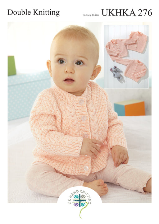 UKHKA 276 Double Knitting Pattern - DK Baby Cardigan, Sweater & Slipover (14-22in)